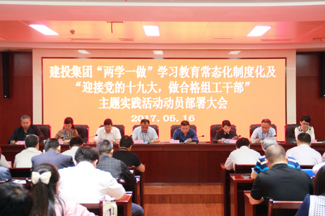 2017年5月16日上午,建投集团组织召开 “两学一做”学习教育常态化制度化及“迎接党的十九大,做合格组工干部”动员部署大会,安排布置“两学一做”相关工作,统一思想,明确任务,落实责任。集团公司党委书记吴晓东主持会议并作动员讲话。集团公司中层以上领导干部、全体党员,所属企业党组织书记及党务、组织人事部门负责人等80余人参加了会议。